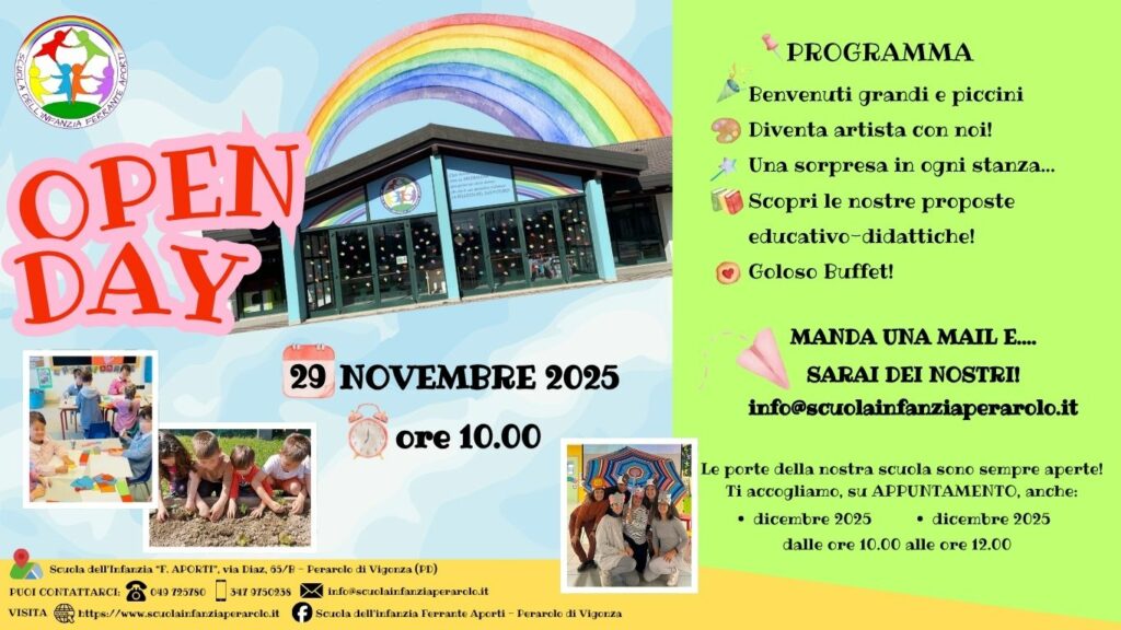 Il 29 Novembre 2025 alle ore 10.00, la Scuola dell’Infanzia di Perarolo apre le sue porte per un emozionante Open Day!